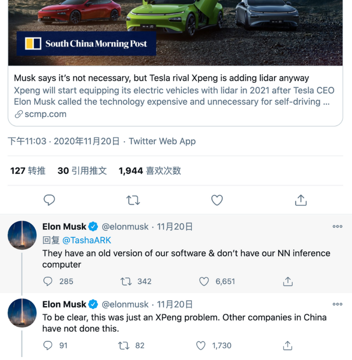 图3:马斯克推上怼小鹏,来源网络