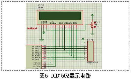 测量的结果要显示出来,本系统采用LCD1602作为显示器,图6为LCD1602和单片机的连接电路,P0口接了上拉电阻,作为数据口;P2口的前3位作为读写和使能的控制引脚。