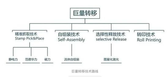 现在摆在 MicroLED 面前最后的难题就是巨量转移技术,简单说,就是在指甲盖大小的 TFT 电路基板上,均匀焊接上百甚至更多的红绿蓝三原色 LED 微小晶粒,其允许的工艺失败率是几十万分之一,这一技术的工艺难度十分之高。在设备方面,精准度、转移头的设计及设备投入也导致成本偏高。而在制程方面,巨量转移技术的产能、良品率一直不能满足各家厂商的需求。