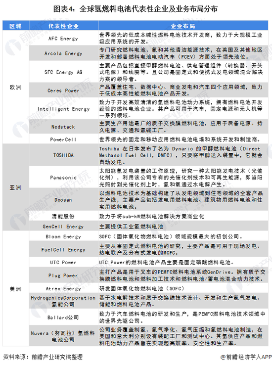 目前,全球范围内涌现了一些优秀的燃料电池生产制造商,主要集中在北美、欧洲、日韩等国家和地区。从生产企业来看加拿大巴拉德动力系统(Ballard Power Systems)、美国Plug Power公司、Hydrogenics公司等在全球占据领先位置。