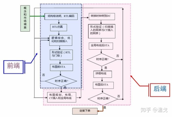 芯片设计又可以分为两部分,芯片前端设计和芯片后端设计,整体流程如下图: