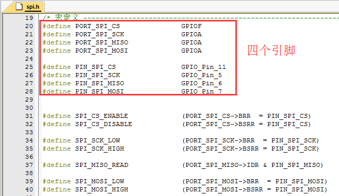 这个主要配置模拟SPI引脚。(如果你板子上使用的引脚不同,请修改spi.h文件的定义即可)
