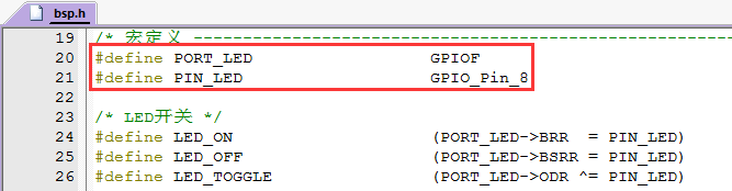 1、LED灯的IO,位于bsp.h下,修改为你的LED灯IO口就行了。