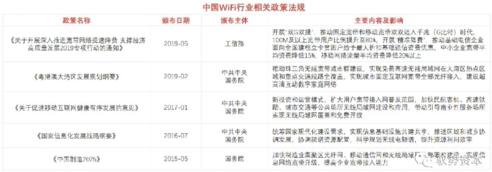中国WiFi行业相关政策法规分析