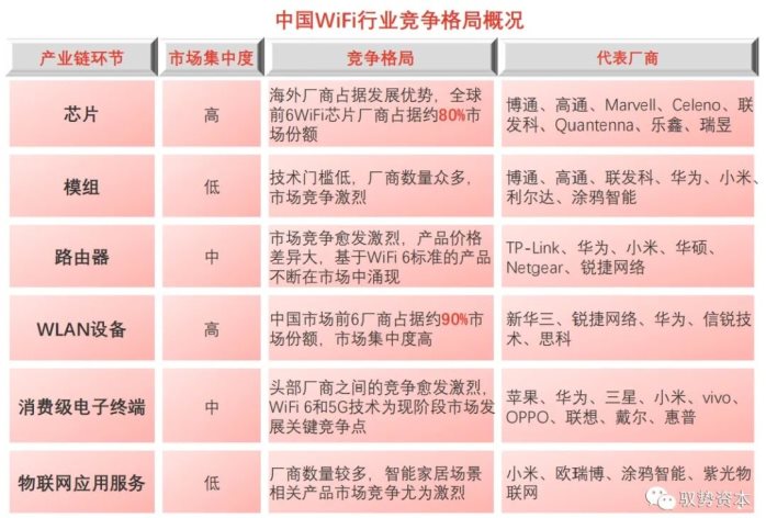 中国厂商在WiFi芯片环节参与度最低
