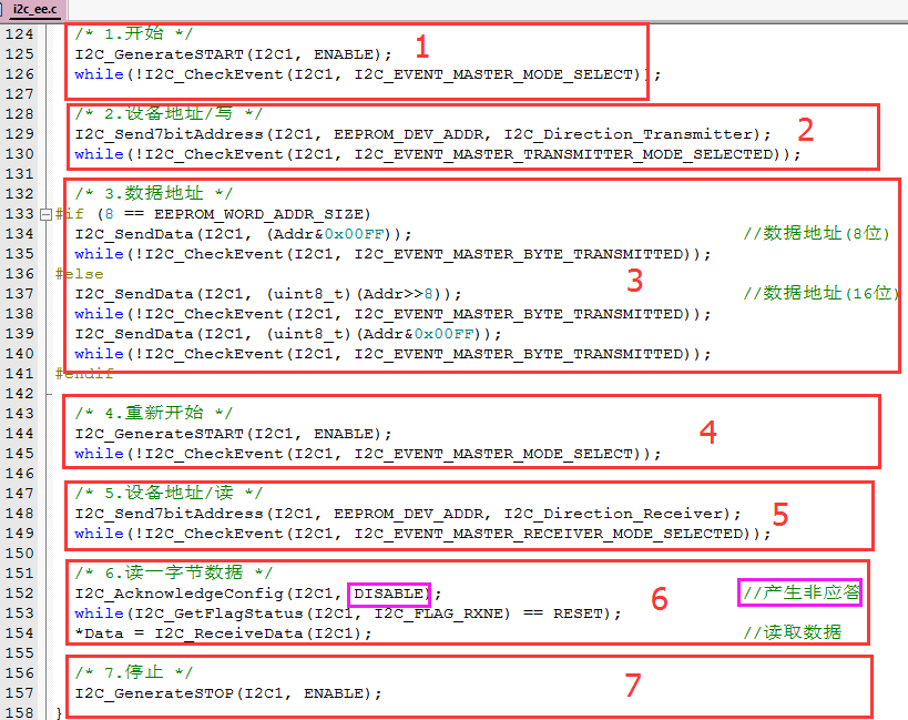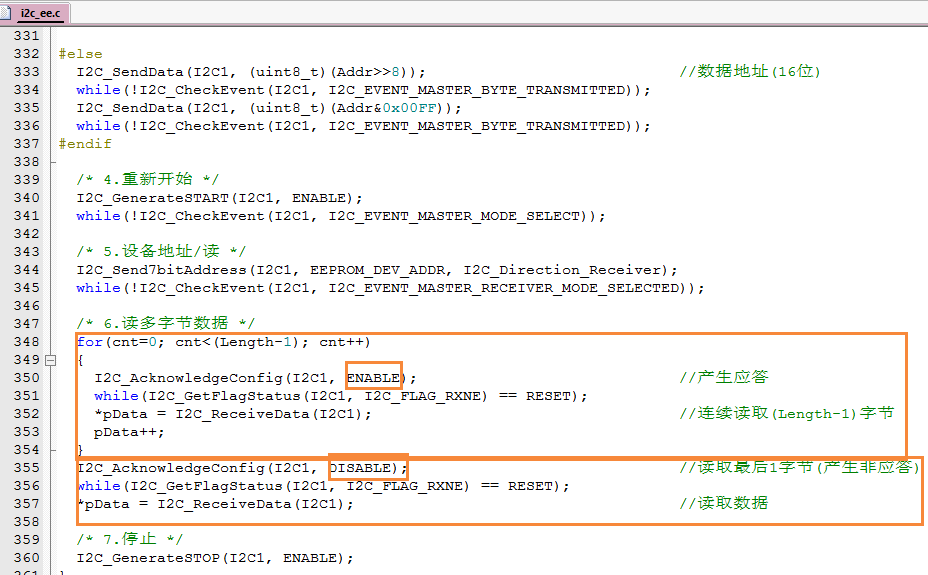 我大概说一下这个标准库I2C例程中读写相关函数吧。