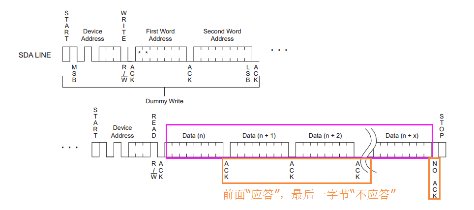 和单字节读比:前面第1步到第5步都是一样的,重点请看第6步,这里产生的应答需要注意。