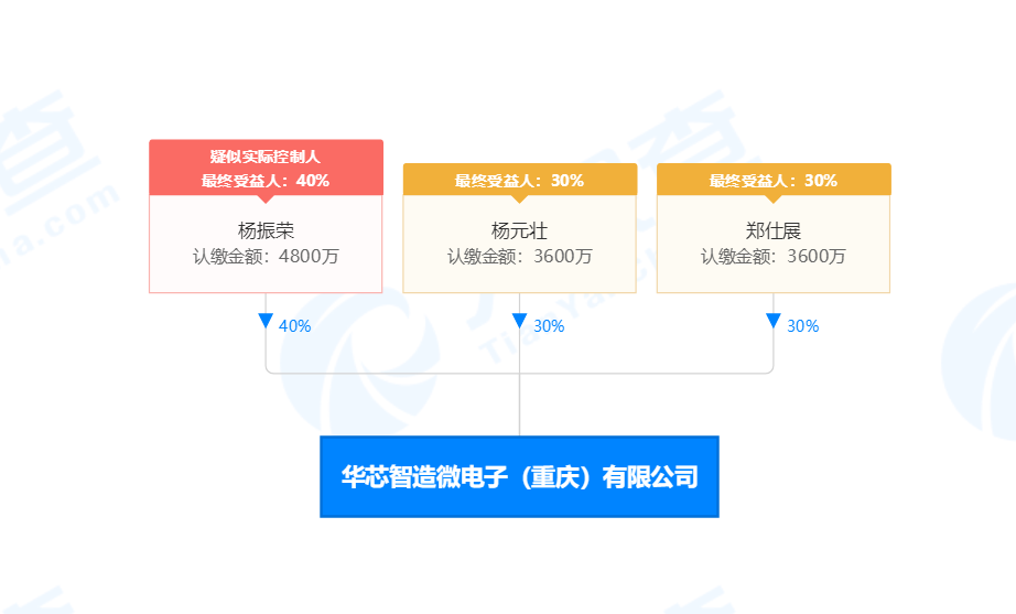 天眼查显示,华芯智造微电子(重庆)有限公司(曾用名“华芯智造微电子(重庆)股份有限公司”)成立于2018年11月13日,股东包括:杨振荣、杨元壮、郑仕展,公司经营范围包括:集成电路芯片;生产、销售:半导体材料;软件开发、销售;智能设备设计、开发、生产及销售;开发、生产、销售:电子产品及电子集成系统;电子产品技术开发等。
