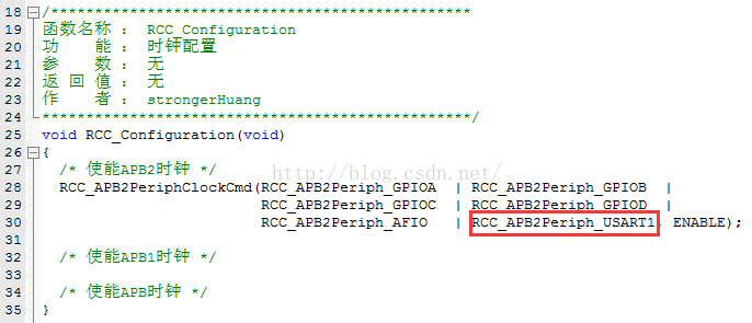 使能串口1(RCC_APB2Periph_USART1)时钟。