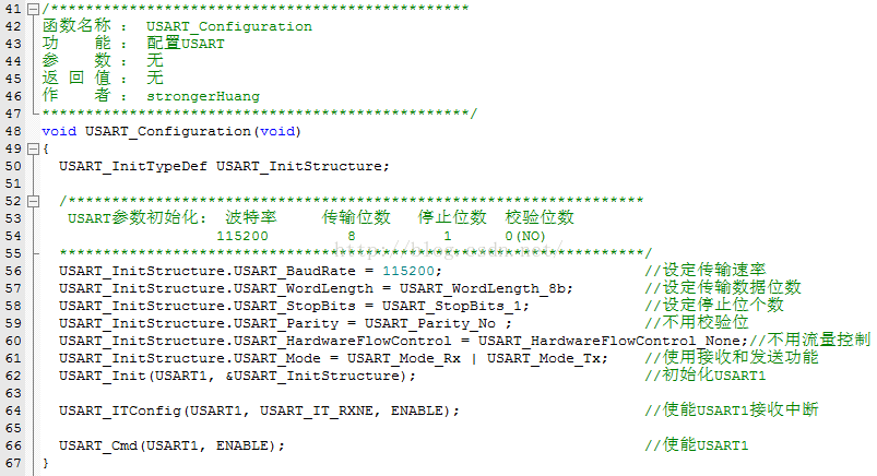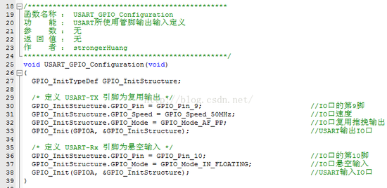 这里的“USART1引脚配置”函数在usart.c文件下面;