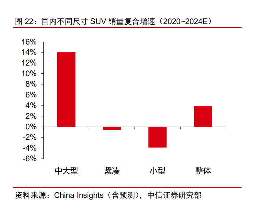 这个车有两个看点。首先,选择切入 SUV 细分赛道,定位豪华中大型 SUV。一方面随着二胎政策开放,平均家庭规模扩大,对大中型 SUV 需求增长。另一方面,城市停车位减少,能满足多种出行需求的 SUV 为更多消费者所青睐,这两个逻辑下,大型 SUV 市场空间渗透率将会持续提升。