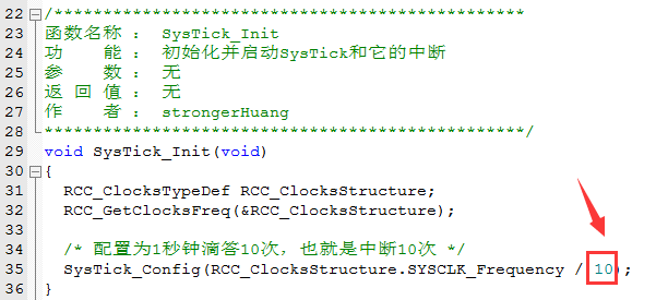 这个函数是芯片标志的函数接口,我大概讲解一下吧,设置重载值,设置中断优先级,配置并初始化SysTick。