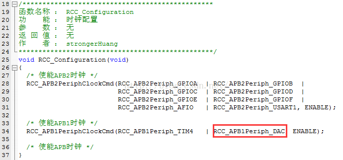 使能RCC时钟:RCC_APB1Periph_DAC