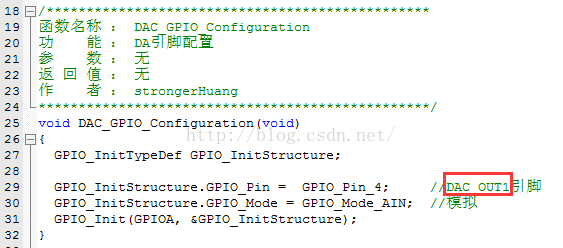 对DA通道1所使用的引脚进行配置。