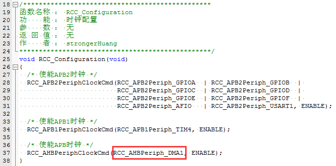 这里是使用RCC_AHBPeriphClockCmd,我开始调试的时候,使用RCC_APB1PeriphClockCmd,怎么都不行,结果我才发现时钟错了。