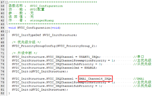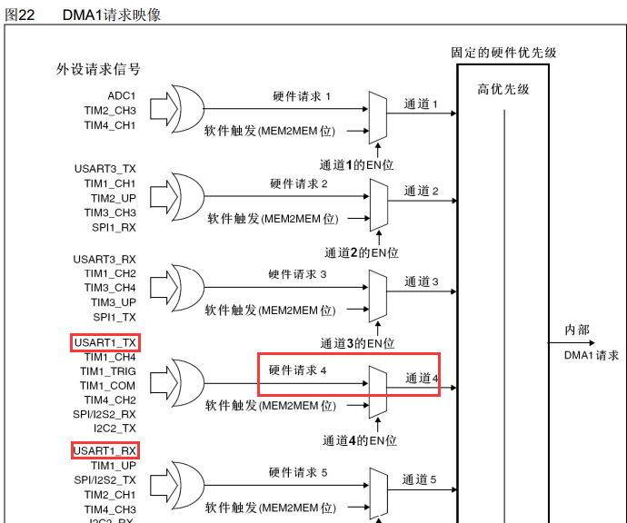 为什么是“DMA1_Channel4”,开始学习的人很纳闷,其实这里是规定的(定的要求,见手册)。