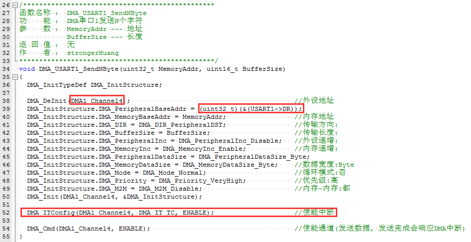 主要就是我框出来的两点比较重要,串口发送数据寄存器地址,中断需要配置。