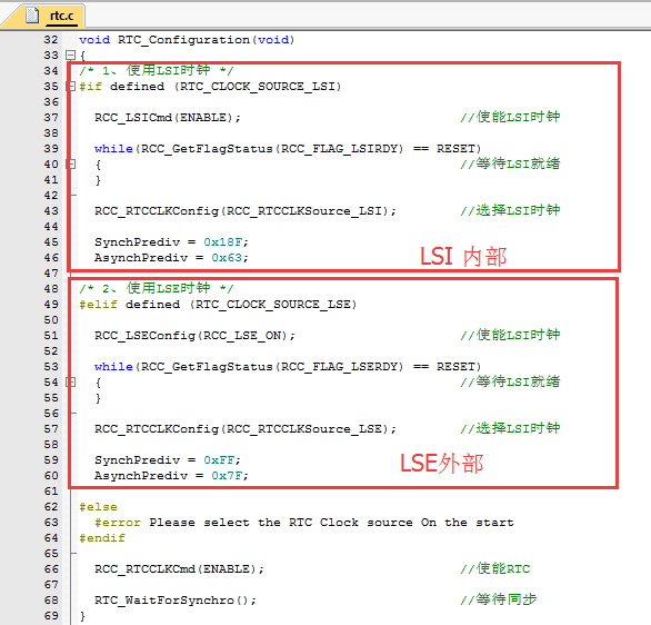 RCC_APB1Periph_PWR时钟的电源管理的时钟,RTC属于后备管理区域。还有一个时钟就是RTC时钟,RTC时钟可以LSI和LSE,我定义了一个选择(请看源代码)。