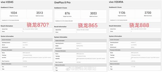 从跑分数据可以看出,骁龙870的Geekbench跑分单核成绩为1034、多核成绩为3513,相比于骁龙865的成绩高出很多,甚至直逼当代旗舰骁龙888。