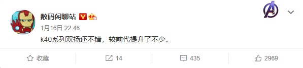 2021年01月17日 | Redmi K40/Pro搭载双扬声器,与K30比提升不少