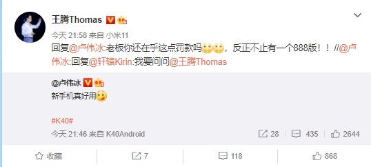 2021年01月18日 | 王腾称Redmi k40系列或不止提供一个骁龙888版本