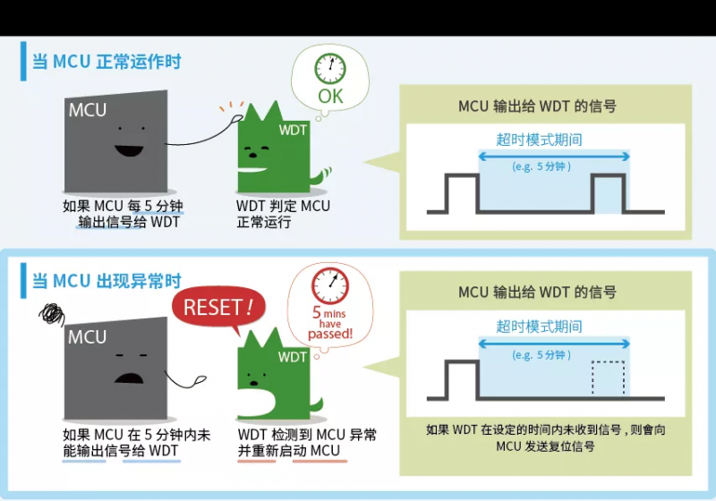 如因某种原因,MCU 程序失控或完全停止运行,电子设备则可能会出现预想不到的动作,在最坏的情况下可能导致损坏或事故。