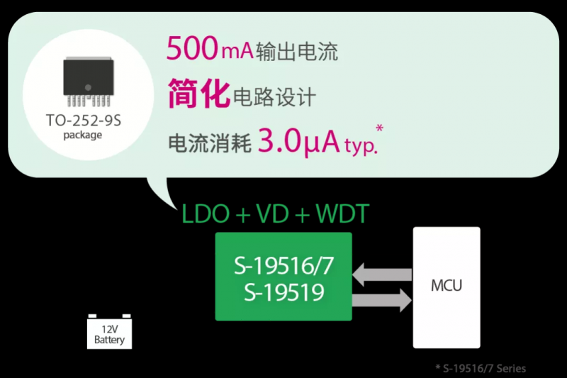 增强集成度也是配合高性能车载 MCU 的趋势,例如把高输出电流、低噪音、低消耗、带复位及看门狗功能集于一体,既可简化电路设计,也可巩固其高性能。