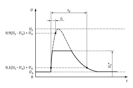图 1 所示为第一种场景,即在交流发电机给电池充电的过程中,电池断开导致的负载突降事件。负载突降会导致电压上升;交流发电机的集中式钳位电路将出现 35V 的最大电压。