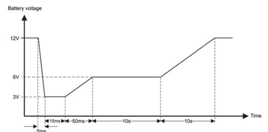 第四种场景是电池电压降低。图 4 所示为冷启动,即发动机在环境温度低的条件下启动。