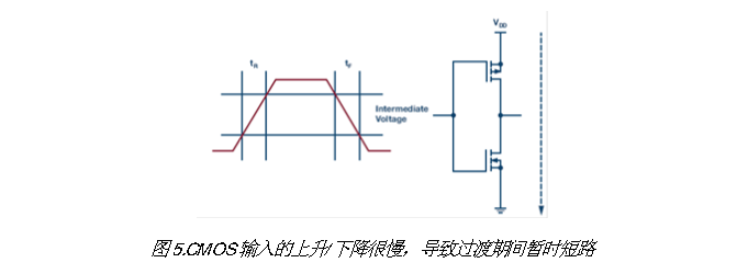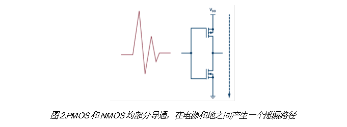 2. 想象CMOS输入属于一个栅极驱动器的情况,该栅极驱动器控制一个高功率MOSFET/IGBT,后者在应当断开的时候意外导通!简直糟糕透了。