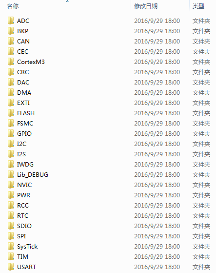 从上面两处下载代码中都是基于标准外设库的参考例程,使用方法类似。这里大概描述一下我们平时开发的标准外设库(有写人叫“标准库”)里面的例程。