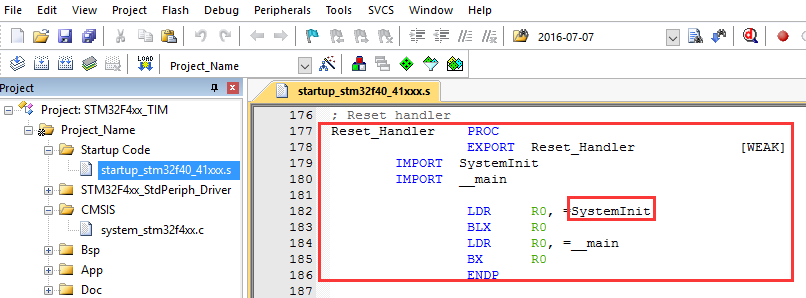 注意:STM32有多系列芯片,这里【SystemInit】函数里面代码的内容也因此不同。