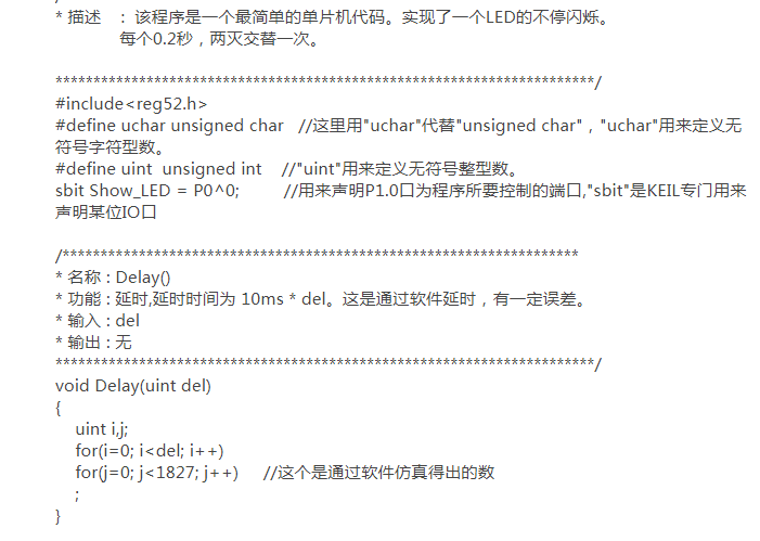 该程序是一个最简单的单片机代码。实现了一个LED的不停闪烁。