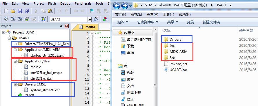 接下来讲述一下使用STM32CubeMX新建的软件工程(MDK-ARM版本)。