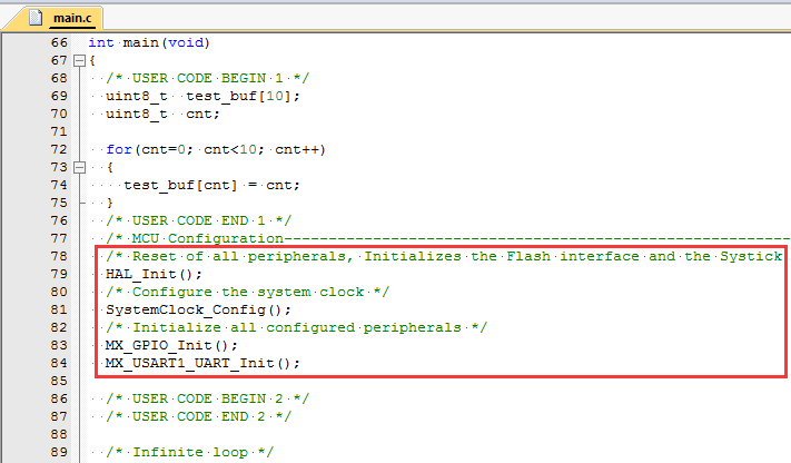 这四个主初始化配置代码中,前面两个基本上是使用STM32CubeMX工具生成都有的代码,后面两个才是用户根据自己需求配置的代码。