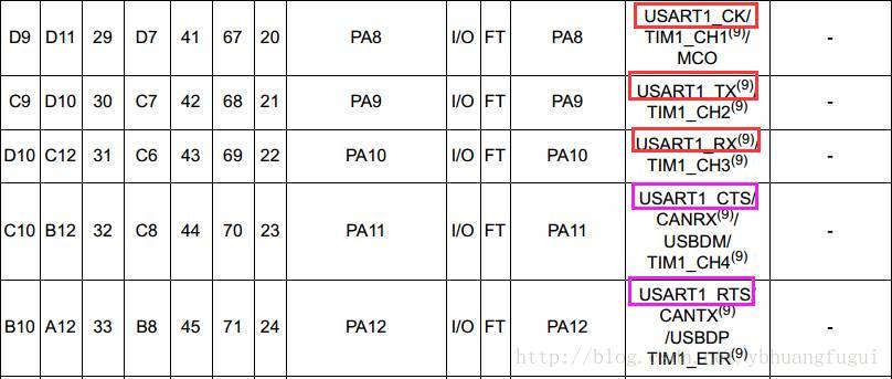 我们都知道USART中RX和TX这两个引脚的功能,这两个引脚是USART串行通信最常见和必不可少的两个引脚。但我们在手册中会发现关于USART的其他引脚:USART_CK、USART_RTS、USART_CTS,如下图: