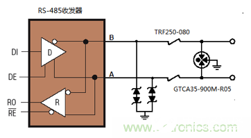 图1:RS-485端口典型浪涌防护解决方案