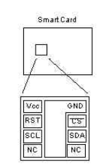 X76F100为128×8位的保密串行FLASH E2PROM,其中读密码和写密码分别为64位。图2为其智能卡Smart Card封装的引脚图。把芯片封装在一个卡片上,将卡片插入IC卡读写器的卡座中,读写器就可以对它进行读写,实现加密、查询、存款、取款等功能。