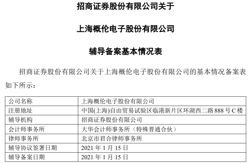 1月21日,上海证监局披露了上海概伦电子股份有限公司(以下简称“概伦电子”)辅导备案基本情况表。