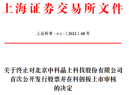 1月21日,上交所发布关于终止对北京中科晶上科技股份有限公司(以下简称:中科晶上)首次公开发行股票并在科创板上市审核的决定。