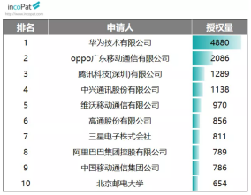 OPPO发明专利授权量位列企业专利权人第二