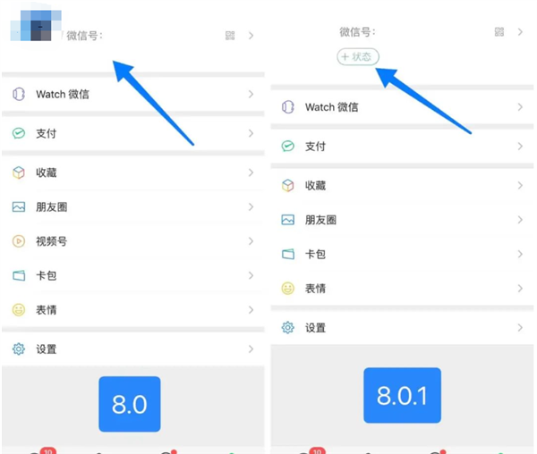 具体来说,就是‘在线状态’功能的修复,在更新到8.0.0版本后,有的小伙伴有在线状态功能,但是很多朋友更新后并没有在我的页面出现‘+状态’的选项。