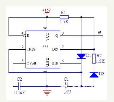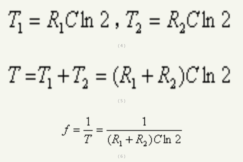 由NE555构成的多谐振荡器是二极管交流电桥测量的方波信号源,其具体电路如图4所示。频率计算如图所示。