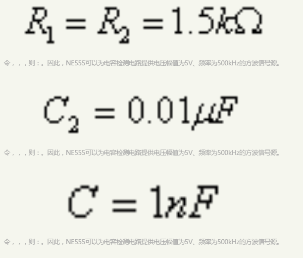 。因此,NE555可以为电容检测电路提供电压幅值为5V、频率为500kHz的方波信号源。