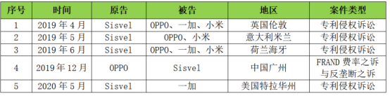 2019年4月至6月,Sisvel分别在英国伦敦、意大利米兰和荷兰海牙起诉中国手机厂商小米、OPPO和一加专利侵权,并提起临时禁令程序。公开信息显示,Sisvel开始接触小米并表明专利许可意愿是2013年,其后两年,Sisvel重复表达了该意愿。2015年,Sisvel开始与OPPO接触,但谈判多年始终未能达成许可协议。2019年,小米、OPPO进入欧洲市场,Sisvel趁机在“自己地盘”发起疯狂诉讼,意图迫使各手机厂商“就范”。