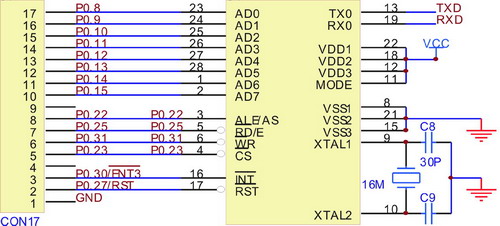 由于LPC2131是由3.3V供电的ARM7TDMI-S微处理器,其各个IO引脚是3.3V的TTL电平,而且可以承受5V的电压。而独立CAN控制器SJA1000是5V供电,其各个IO口的电平是5V的TTL电平,所以二者兼容,其IO可以直接相连。