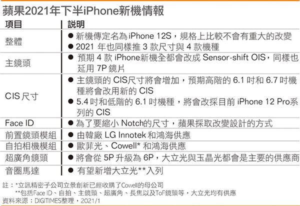 此外,为了缩小刘海尺寸,苹果也将调整Face ID设计,而超广角镜头也将从现行的5P提升为6P。