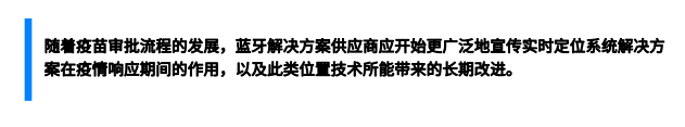 ■随着疫苗研发的逐渐完成,人们对这些设备的兴趣和研究动力可能会减弱。企业将减少对投资短期解决方案的投资,或者会暂停投资,直到疫苗形势变得更加明朗。新冠疫情应对方案的价值会随着疫情本身的减弱而下降。因此,解决方案供应商应借此机会围绕实时定位系统和蓝牙技术具备的其他优点展开讨论,并鼓励采用资产和设备追踪及其他运营效率解决方案,在后疫情时代实现更全面的数字化转型。