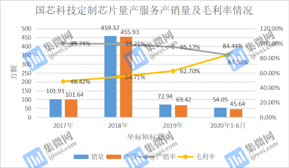 在定制芯片量产服务方面,其分别实现产量为101.91万颗、459.57万颗、72.94万颗、54.05万颗;对应的销量分别为101.64万颗、455.93万颗、69.42万颗、45.64万颗;产销量分别为99.74%、99.21%、95.17%、84.44%。