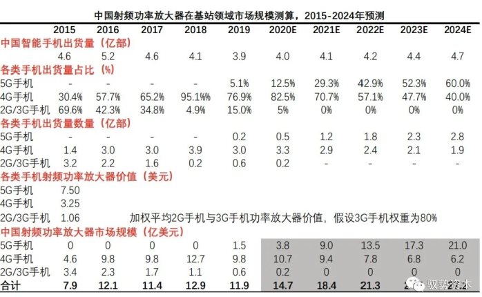 射频功率放大器市场规模测算逻辑
